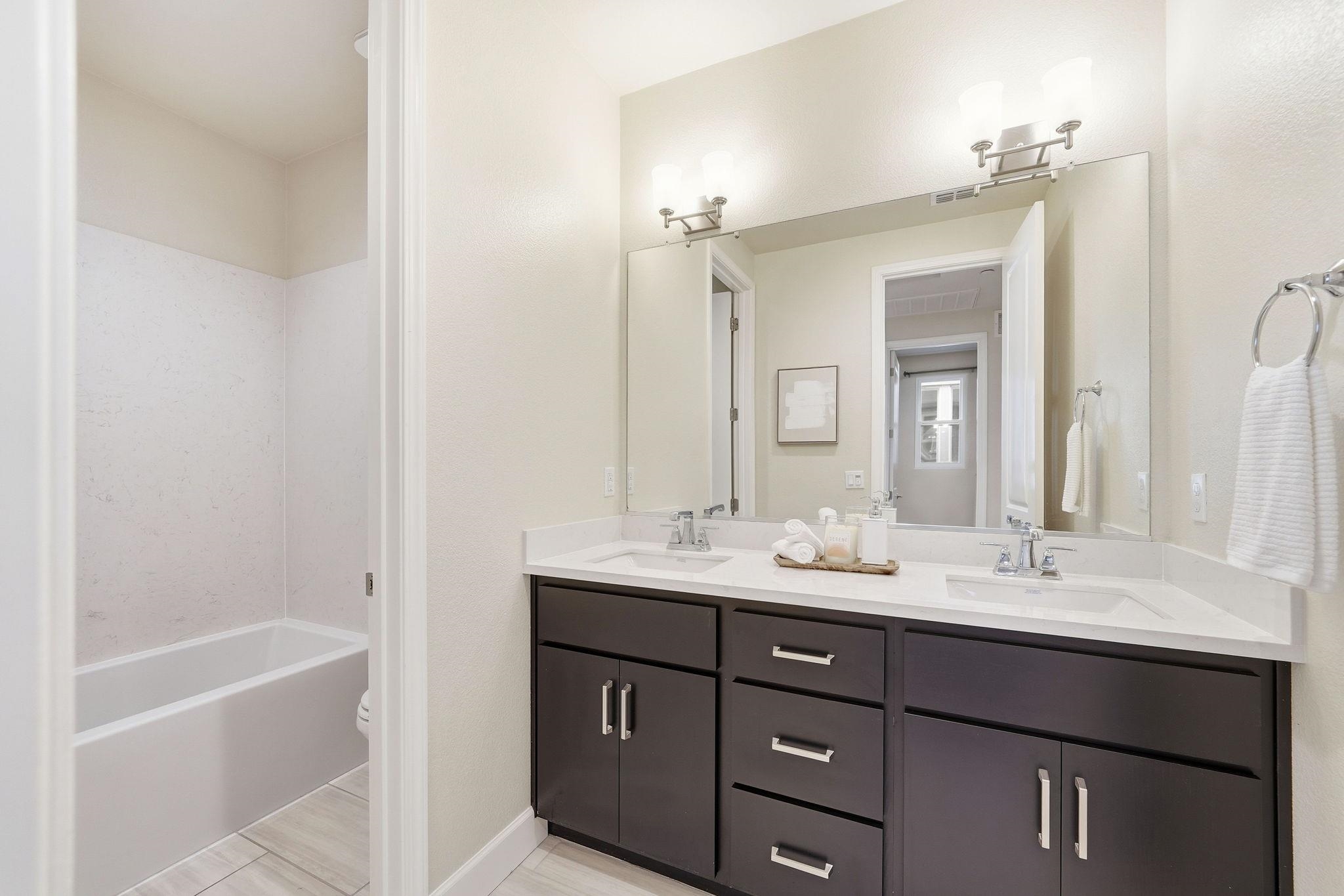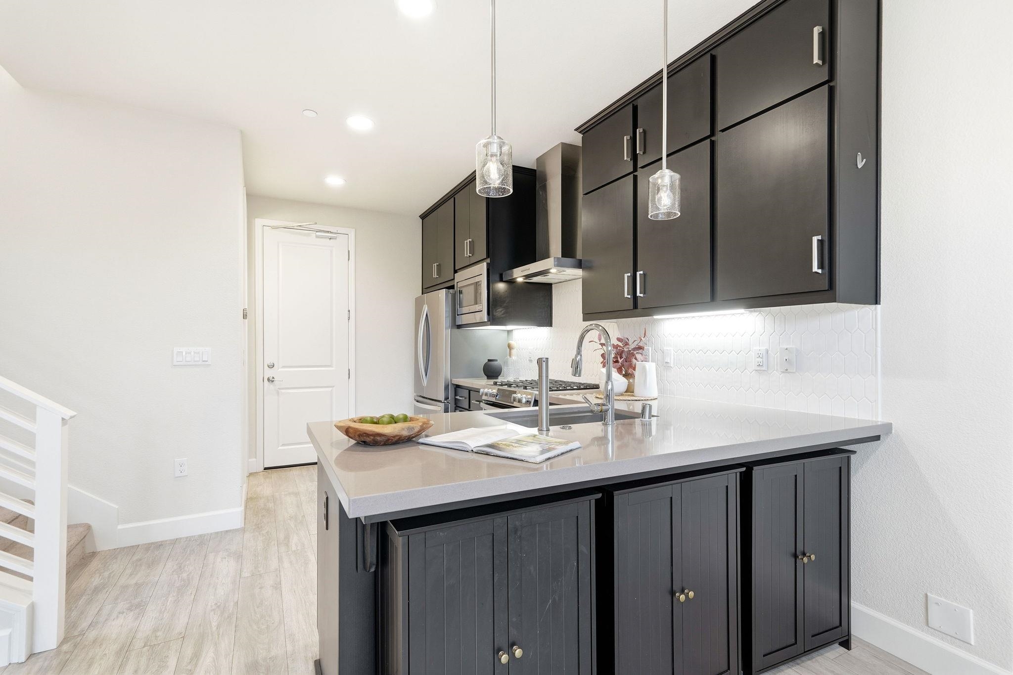 Price reduced - Welcome to this bright and inviting home, featuring an open, airy floor plan and abundant natural light. Built in 2022, this home offers modern design, owned solar panels, smart-home features, energy efficiency, and low-maintenance living. The beautifully designed kitchen and living area are perfect for everyday living and entertaining, featuring elegant quartz countertops, a designer-selected full-tile backsplash, and GE stainless steel Energy Star(r) appliances, including a gas range, microwave, and dishwasher. The spacious great room opens to a private rear yard finished with stylish patio pavers, ideal for outdoor dining and gatherings. Upstairs, the expansive primary suite offers serene hill views, dual walk-in closets, a double-vanity bath, and a tastefully tiled walk-in shower. Both the primary and guest bathrooms feature sleek Piedrafina marble countertops. Additional conveniences include an upstairs laundry room with upper cabinetry, a generous two-car garage with EV charger, water softener, instant hot water with RO purifier, and fresh interior paint throughout. The HOA is $295/month and covers front and common area landscaping, streets, storm drainage, street pavers, stone walls, wood fencing.