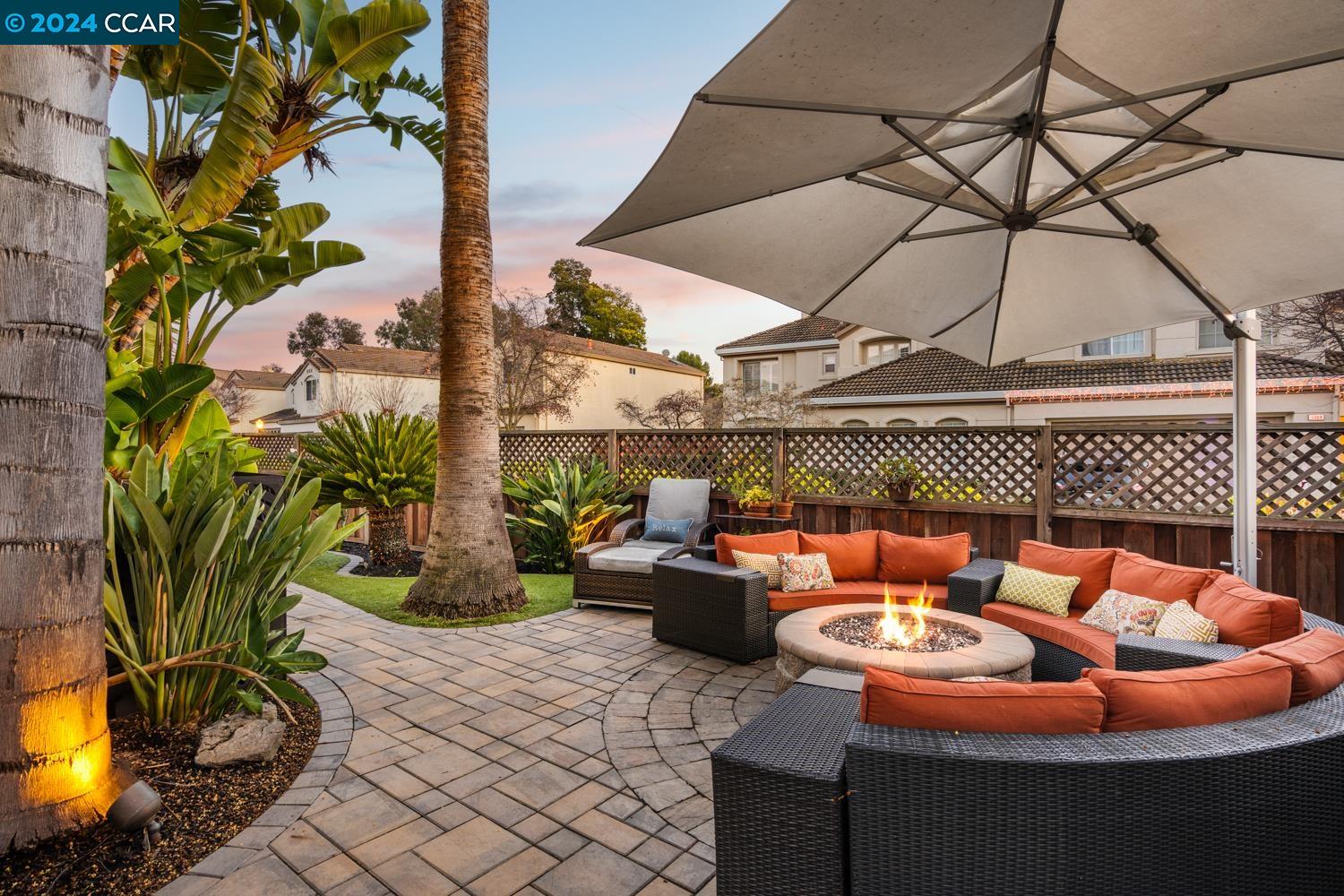 Tucked away in the highly sought-after, gated community of Vista Pointe Canyon Lakes. Experience resort-like living with the nearby Canyon Lakes Golf Course and a tropical paradise just outside your doorstep - with paver patios, fire pit, and lush landscaping including vibrant birds of paradise plants and gorgeous palm trees. Travertine tiles greet you as you make your way through the open concept floorplan. The living room & adjacent dining area, highlights French doors with a phantom screen leading to the backyard, seamlessly connecting indoor and outdoor living. The meticulously maintained kitchen is equipped with SS appliances, insta hot water feature, granite countertops, custom backsplash, an abundance of cabinetry and offers a sunny breakfast nook. Make your way to the spacious primary bedroom suite with vaulted ceilings and an ensuite bath offering a walk-in closet with built-in organizers, dual sinks, walk-in shower and jetted tub. The 2nd level is complete with 2 secondary bedrooms, 1 of which has been converted into a loft, shared hallway bath and laundry room. The garage highlights epoxy floors and an abundance of custom built-in storage space. Located near top rated San Ramon Valley schools, Canyon Lakes Golf Course and shopping/dining at the City Center.